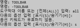 정확히 입력하면 아래와 같이 " 도구막대 이름 또는[ALL]:" 문구가 나오게된다.