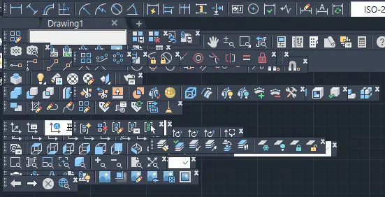 - 또는 개별적으로 필요한 도구모음(DRAW, MODIFY, LAYER 등)을 활성화 가능