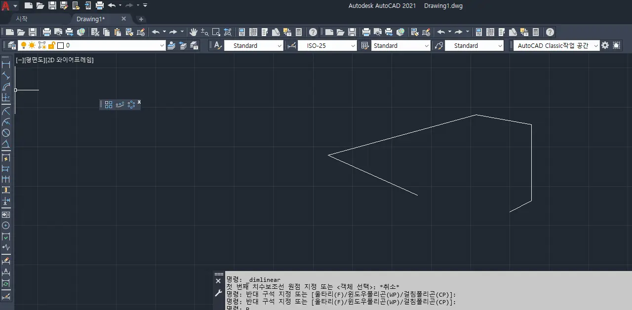 그럼 'AutoCAD Classic' 작업 공간 만들기 1단계는 성공이다.