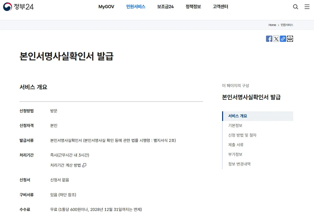 ✔ 유사한 기능을 하는 "본인서명사실확인서"는 정부24에서 온라인 발급 가능