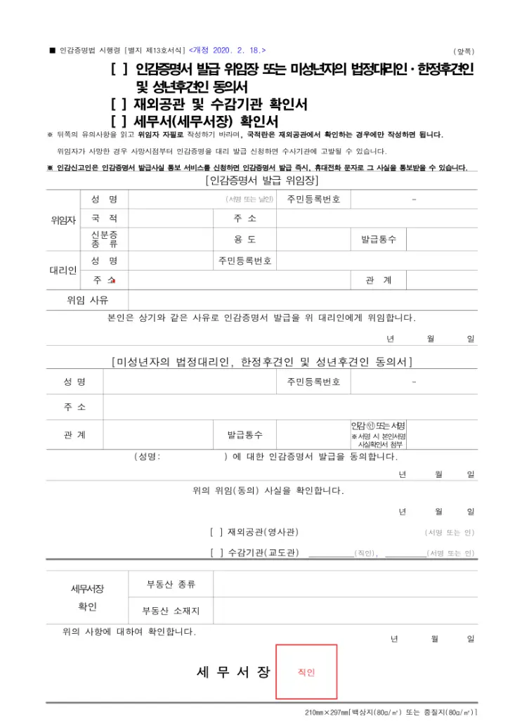✔ 대리 발급 시 위임장과 인감도장 날인이 반드시 필요