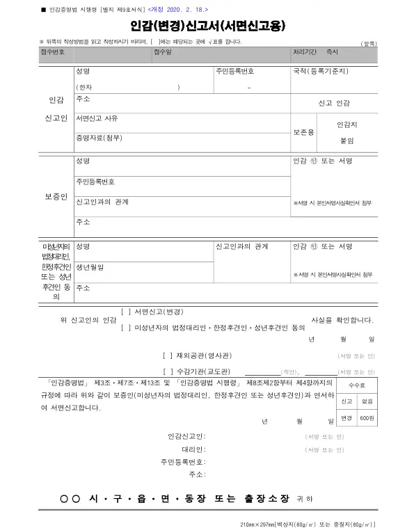| 관인 | 증명청 날인 (읍·면·동장, 시·군·구청장) | 날인 없음 |