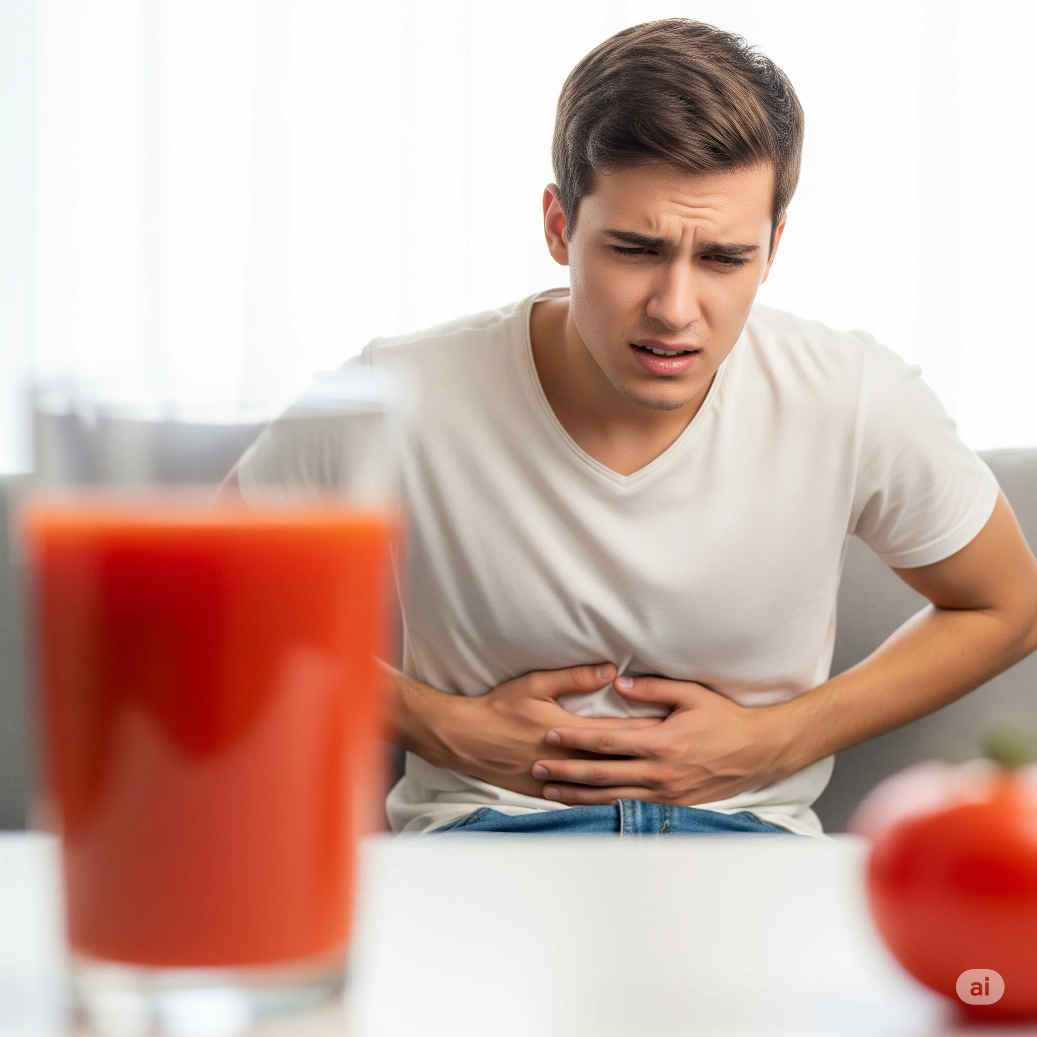 토마토는 산성 식품이기 때문에, 평소 위장이 약하거나 위염, 위식도 역류 질환이 있는 분들은 토마토 주스를 마신 후 속 쓰림이나 위산 역류 증상을 경험할 수 있어요. 특히 공복에 마실 경우 증상이 심해질 수 있으니 주의해야 합니다.
