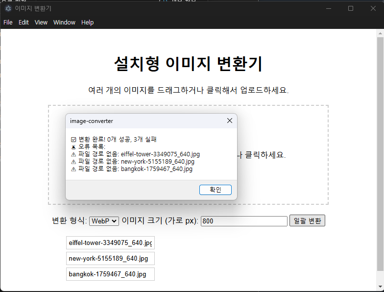 - window.electron.onConversionFailed() → 변환 실패 시 메시지 출력